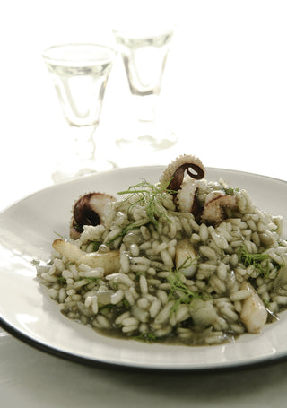 Ριζότο με μελάνι σουπιάς και λικέρ μαστίχας