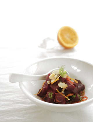 Ζεστή παντζαροσαλάτα με πορτοκάλι, μαστίχα και φουντούκια