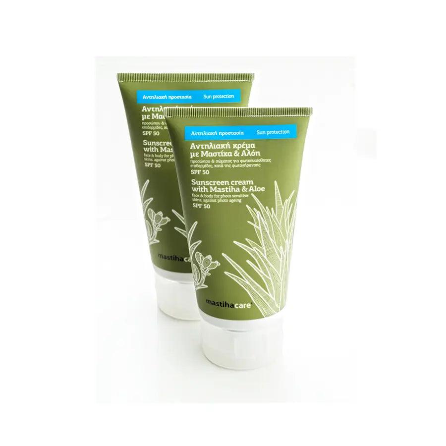 Περιέχει: Μαστιχέλαιο (αιθέριο έλαιο το οποίο αποστάζεται από τη μαστίχα, την πολύτιμη για τις αντιμικροβιακές και επουλωτικές ιδιότητες της ρητίνη του χιώτικου μαστιχόδεντρου (Pistacia lentiscus var. chia)), εκχυλίσμα από Αloe Vera, άμυλο από καλαμπόκι, φωτοσταθερά φίλτρα και βιταμίνη Ε.