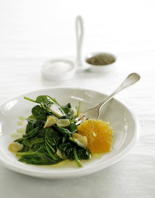 Warm salad with spinach, orange and olive oil infused with mastiha