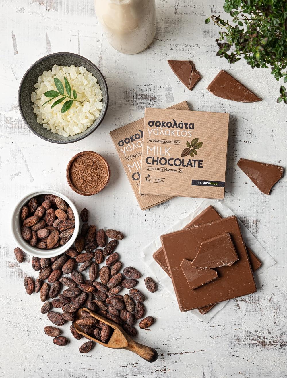 Handmade milk chocolate with the wonderful distinctive aroma of Mastiha. In combination with the Mastiha liqueur it makes a fine gift for our loved ones!!
