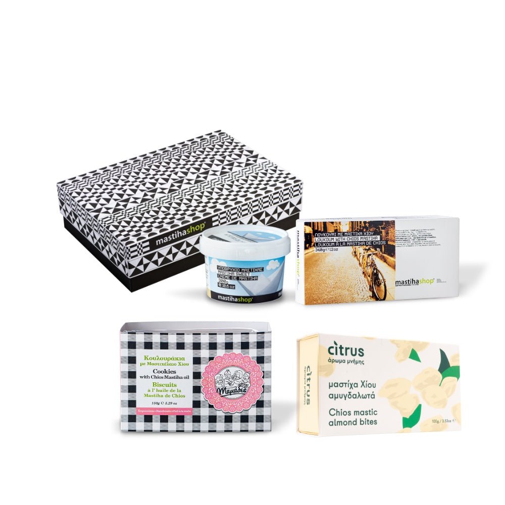 Paper gift box with dimensions 33,0 x 24,0 x 9,0 cm, with traditional sweets with Mastiha.