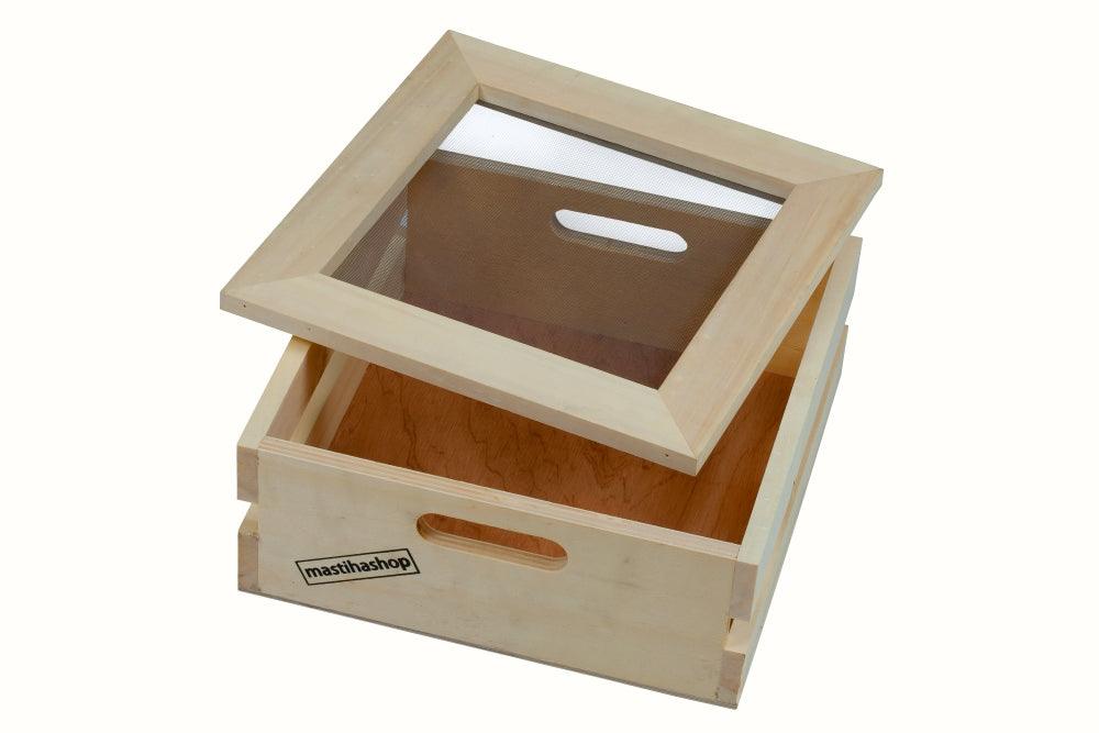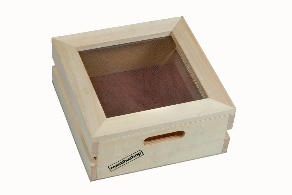 Wooden gift box with dimensions: 30,5 x 30,5 x 12,5 cm