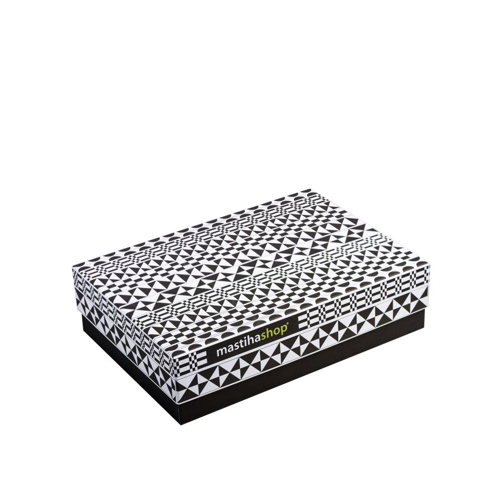 Paper gift box "PYRGI" with dimensions: 27,2 x 19,0 x 6,8 cm