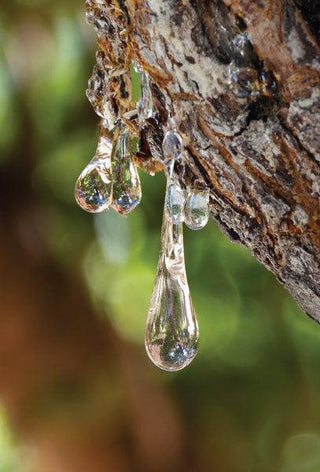 Η μαστίχα εμφανίζεται σαν δάκρυ στα χαραγμένα σημεία και ρέει κατά σταγόνες στο χώμα. Η μορφή της είναι κρυσταλλική και η αρχική της γεύση είναι μάλλον πικρή, για να φύγει σύντομα, αφήνοντας ένα ιδιαίτερο άρωμα που της προσδίδει μοναδικότητα.